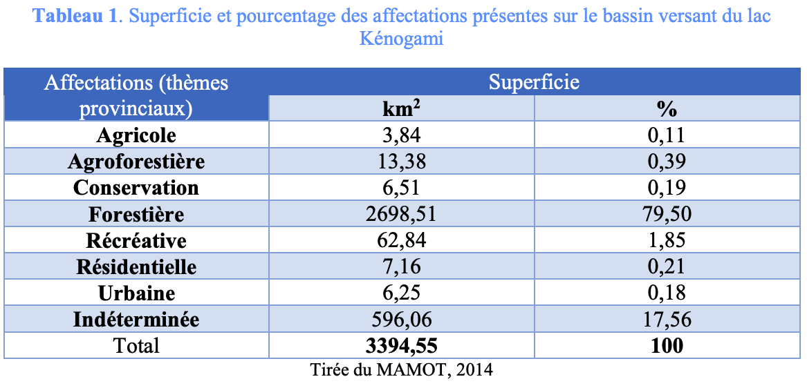 Par contre, d’autres réalités jouent sur la qualité de l’eau du lac Kénogami. Notamment, les apports en éléments nutritifs pouvant provenir du bassin versant du lac, comme la roche-mère en place, les parterres de coupes forestières, des installations septiques ou l’usage de fertilisants sur terres agricoles.