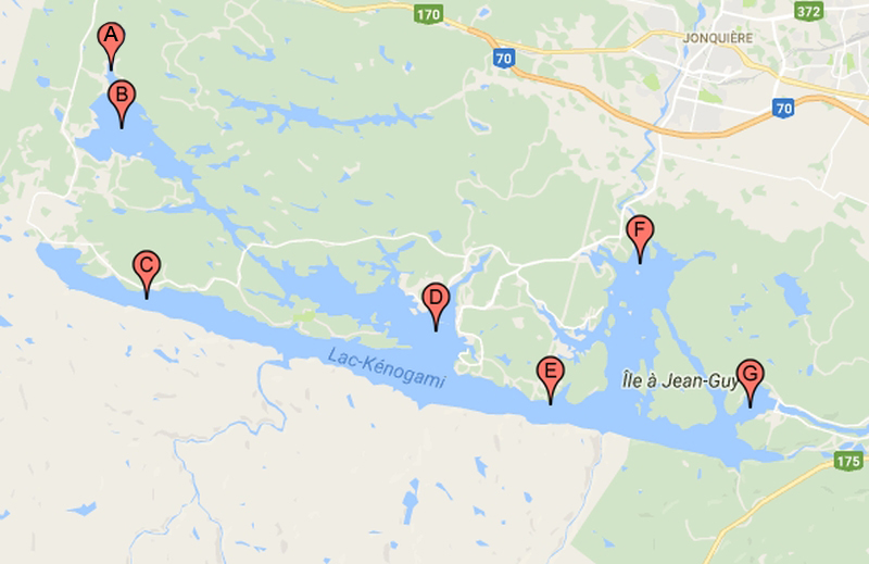 Pour le lac Kénogami, 7 stations permettent de suivre la qualité de l’eau en effectuant: